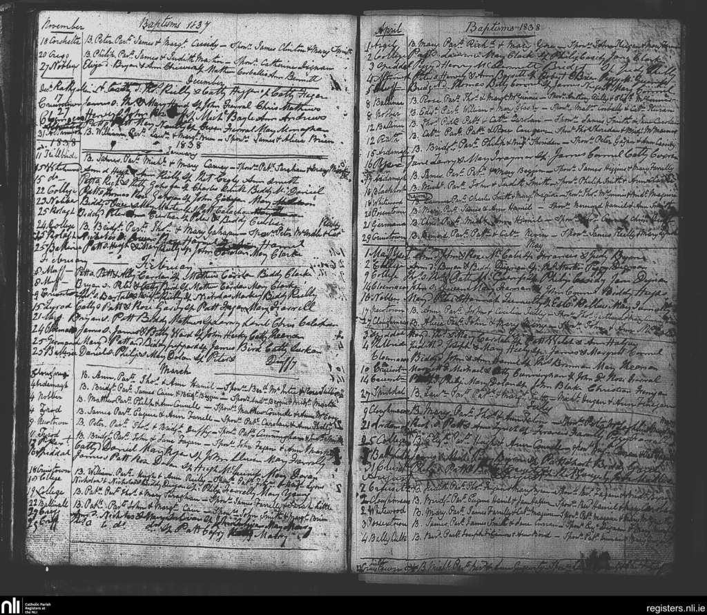 Nobber; County of Meath; Diocese of Meath. Baptisms, Nov. 1837 to Aug. 1838