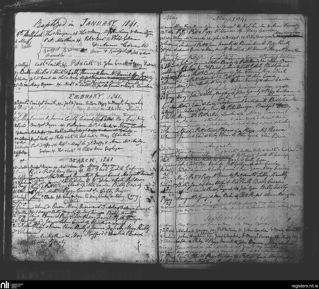 Nobber; County of Meath; Diocese of Meath. Baptisms, Jan. 1841 to Sep. 1841