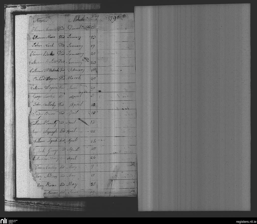 Dunshaughlin; County of Meath; Diocese of Meath. Deaths, Dec. 1789 to June 1790