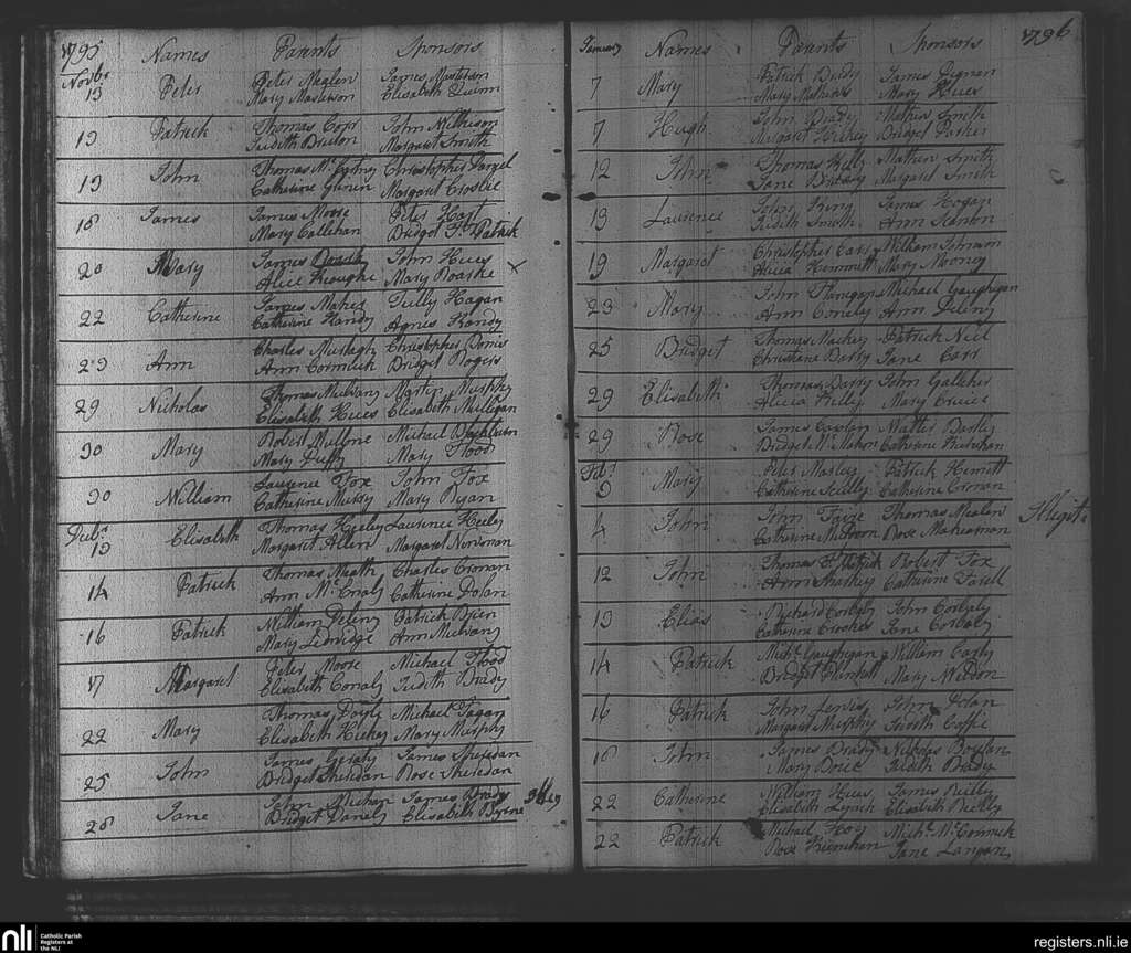 Dunshaughlin; County of Meath; Diocese of Meath. Baptisms, Nov. 1795 to Feb. 1796