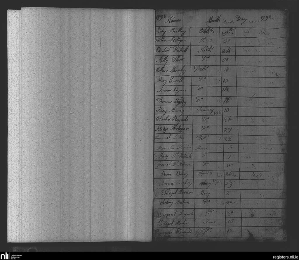 Dunshaughlin; County of Meath; Diocese of Meath. Deaths, Oct. 1791 to June 1792