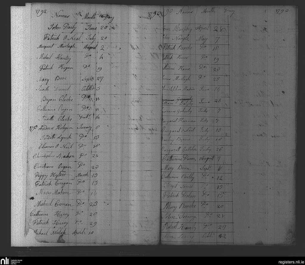 Dunshaughlin; County of Meath; Diocese of Meath. Deaths, June 1792 to Oct. 1793