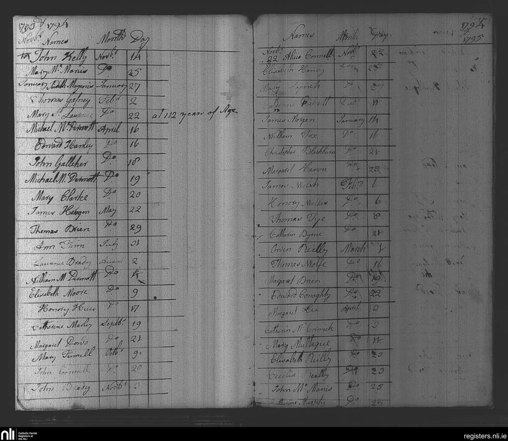 Dunshaughlin; County of Meath; Diocese of Meath. Deaths, Nov. 1793 to Apr. 1795