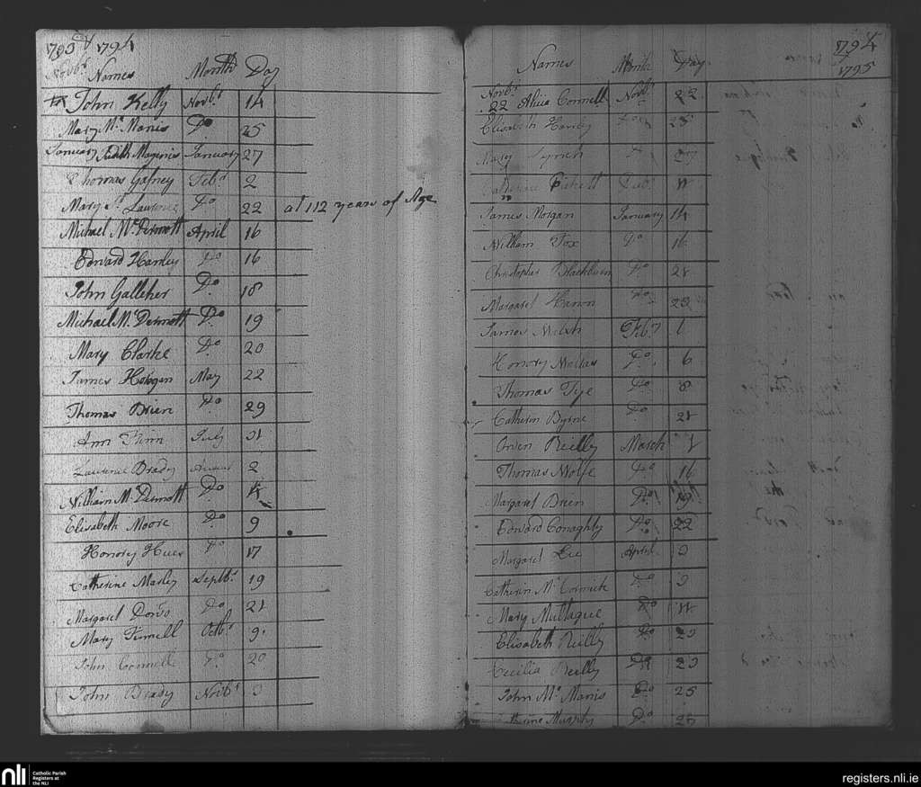 Dunshaughlin; County of Meath; Diocese of Meath. Deaths, Nov. 1793 to Apr. 1795