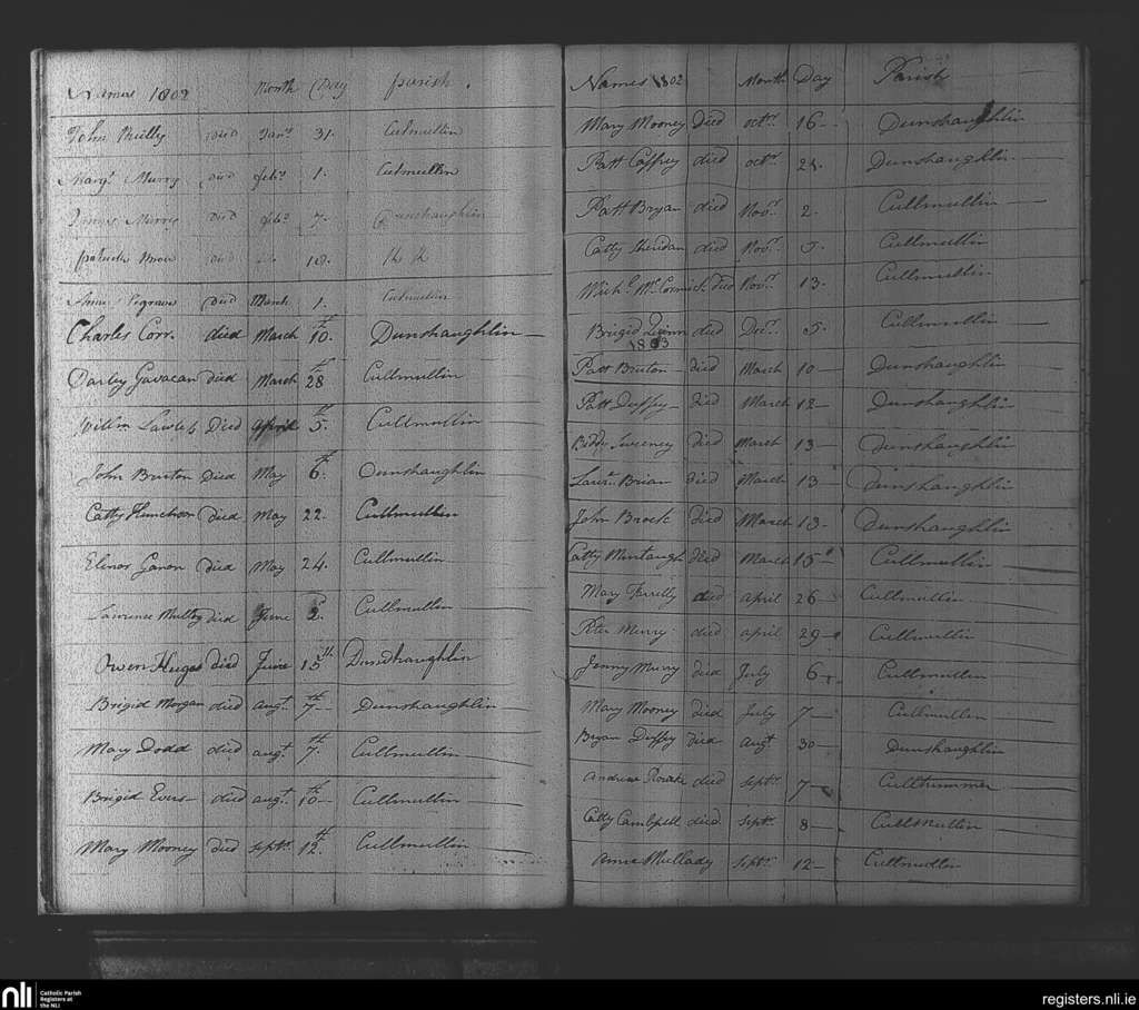 Dunshaughlin; County of Meath; Diocese of Meath. Deaths, Jan. 1802 to Sep. 1803