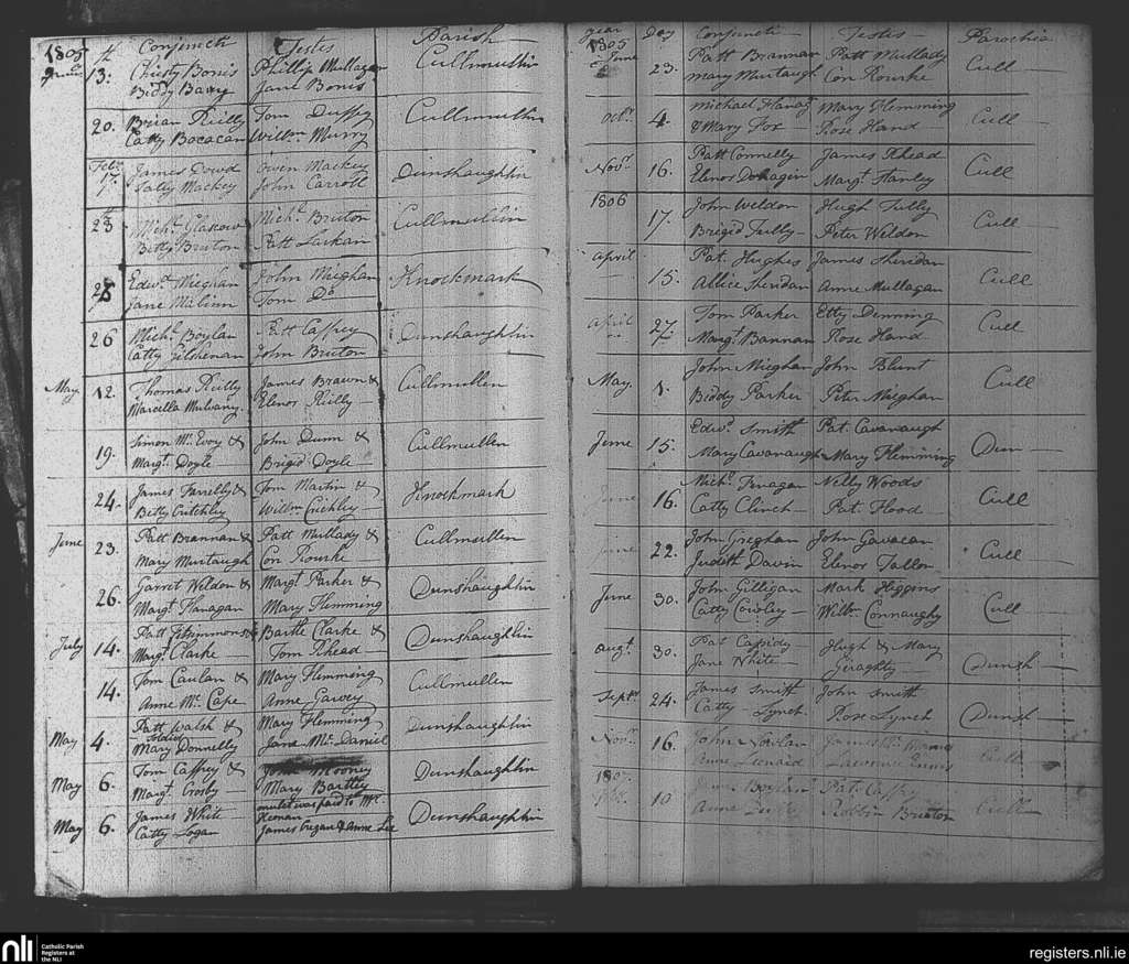 Dunshaughlin; County of Meath; Diocese of Meath. Marriages, Jan. 1805 to Feb. 1807