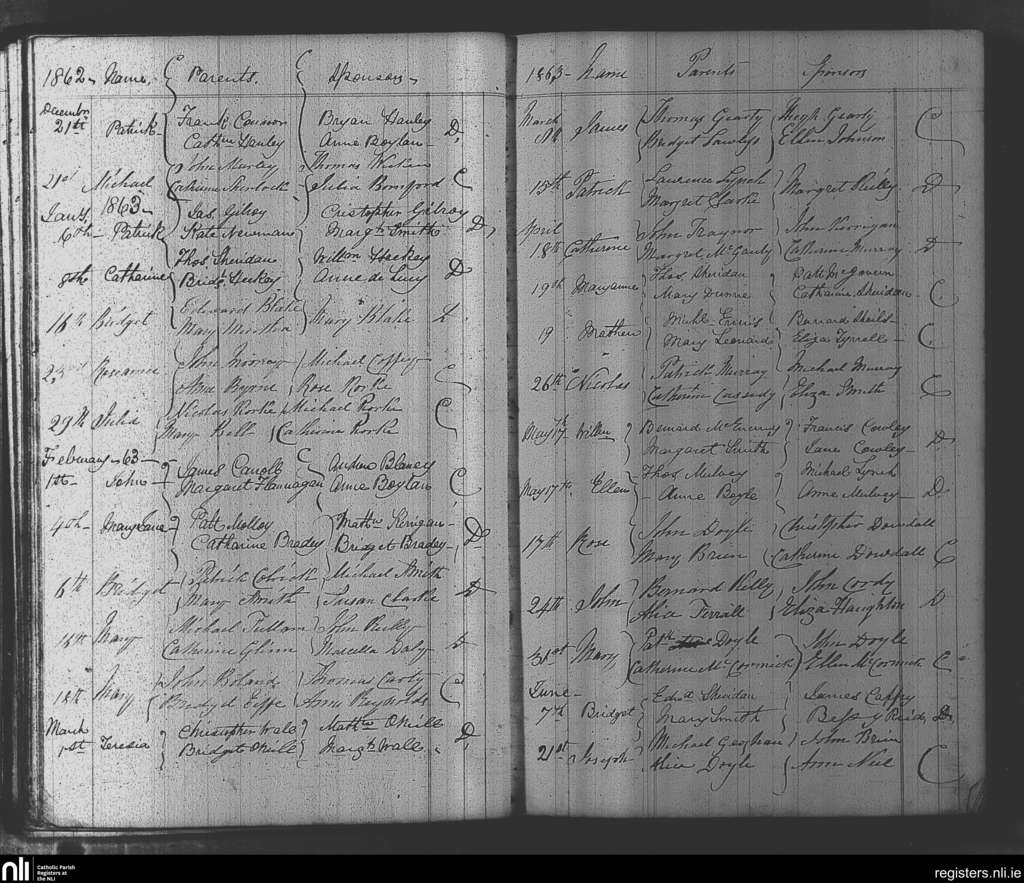 Dunshaughlin; County of Meath; Diocese of Meath. Baptisms, Dec. 1862 to June 1863