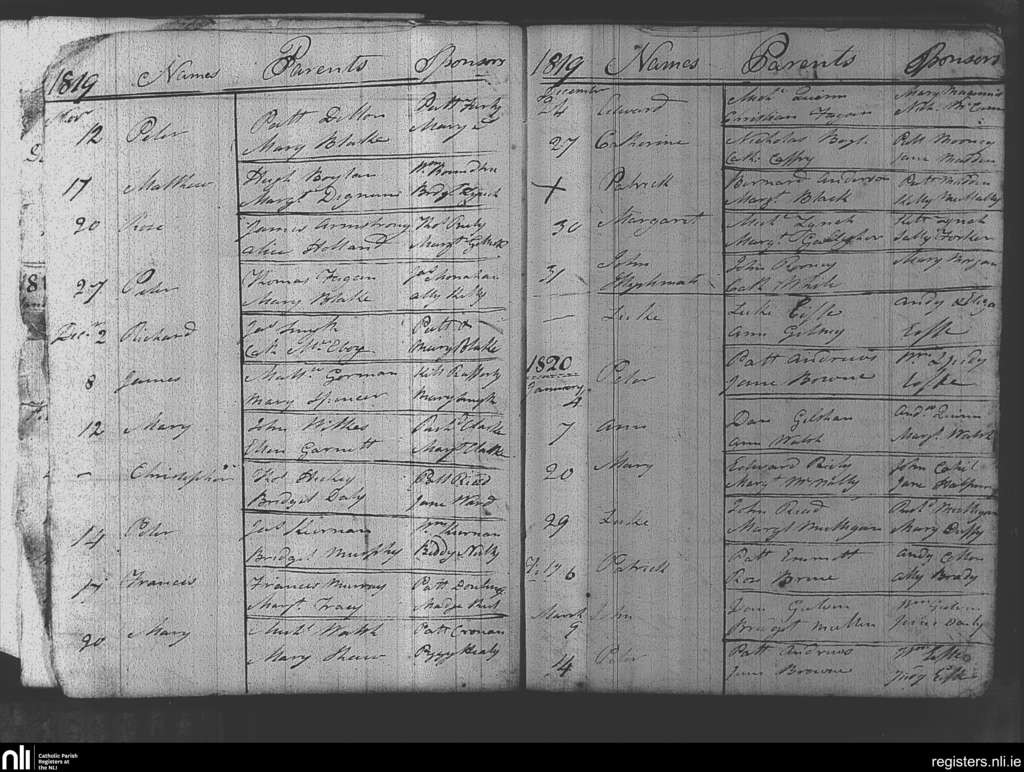 Ratoath; County of Meath; Diocese of Meath. Baptisms, Nov. 1819 to Mar. 1820