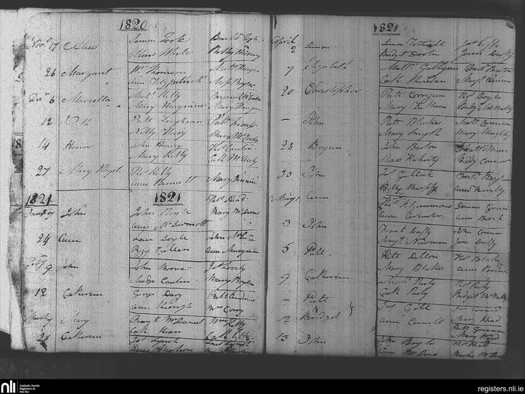 Ratoath; County of Meath; Diocese of Meath. Baptisms, Nov. 1820 to May 1821