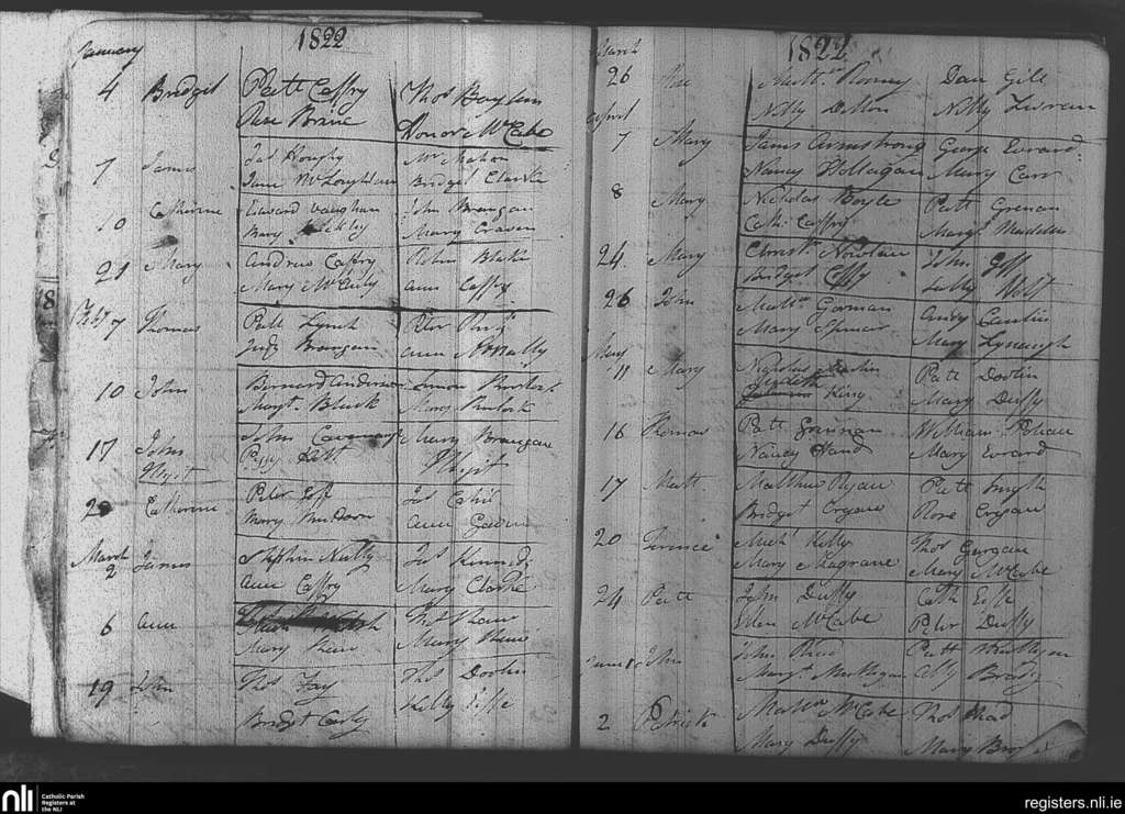 Ratoath; County of Meath; Diocese of Meath. Baptisms, Jan. 1822 to June 1822