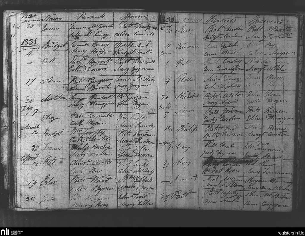 Ratoath; County of Meath; Diocese of Meath. Baptisms, Dec. 1830 to Aug. 1831