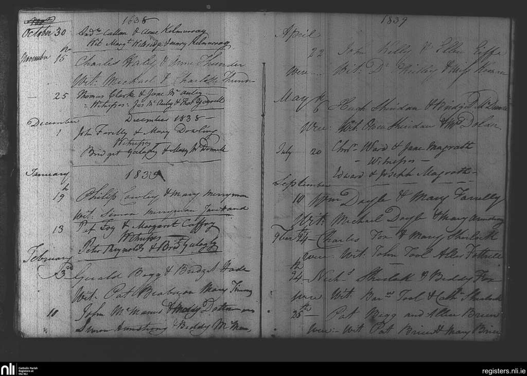 Ratoath; County of Meath; Diocese of Meath. Marriages, Oct. 1838 to Nov. 1839