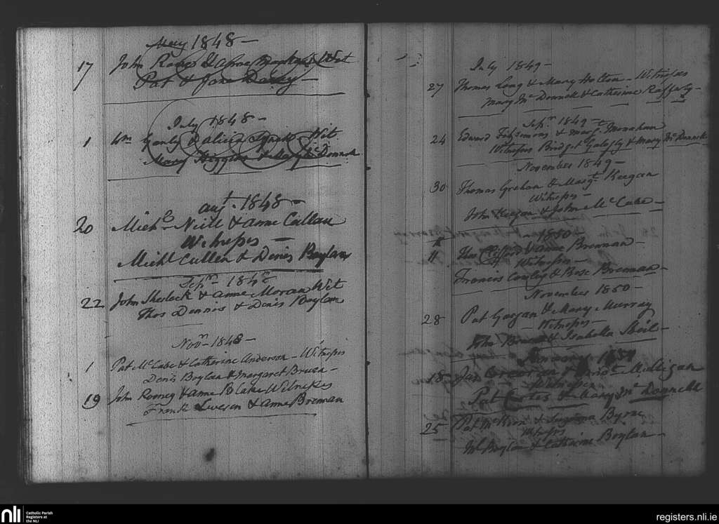 Ratoath; County of Meath; Diocese of Meath. Marriages, May 1848 to Jan. 1851