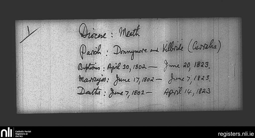 Donymore; County of Meath; Diocese of Meath. Baptisms, Marriages, Deaths