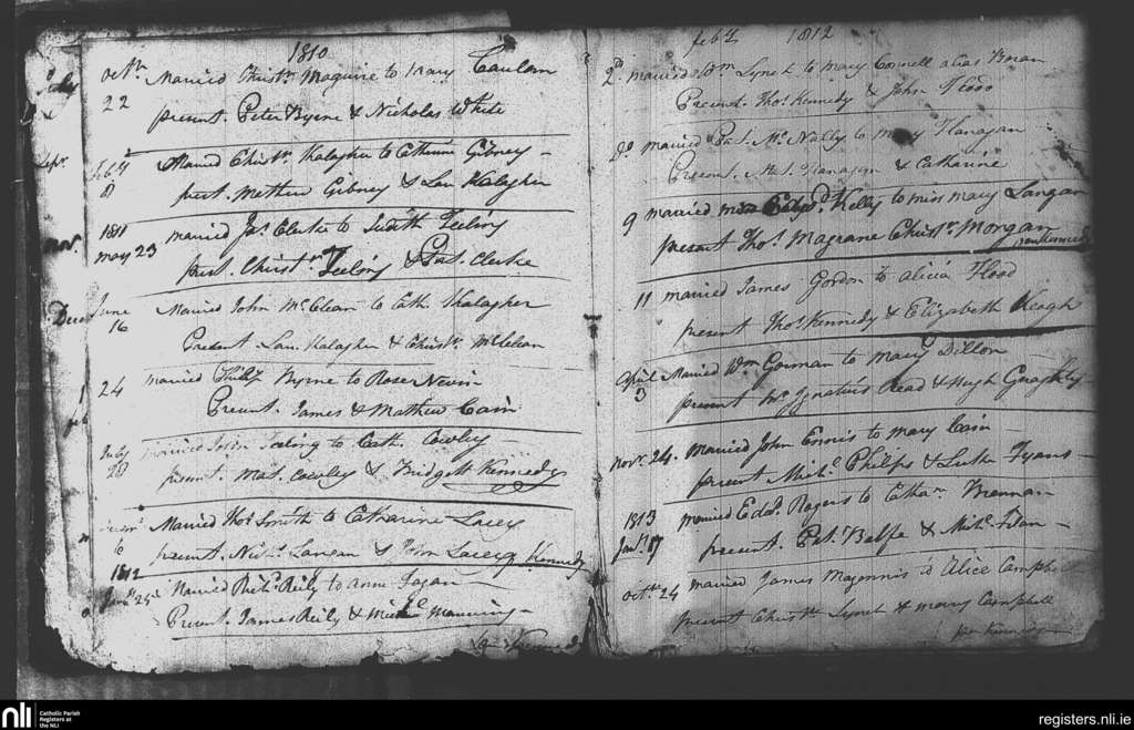 Donymore; County of Meath; Diocese of Meath. Marriages, Feb. 1810 to Oct. 1813