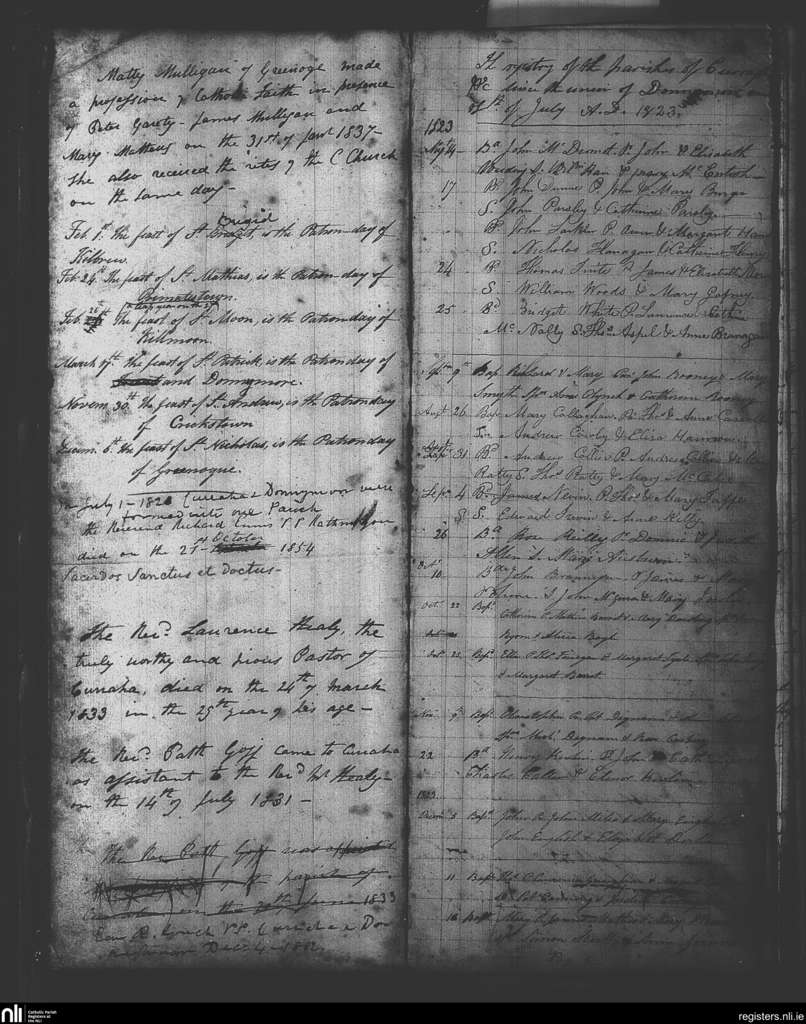 Donymore; County of Meath; Diocese of Meath. Baptisms, Aug. 1823 to Dec. 1823