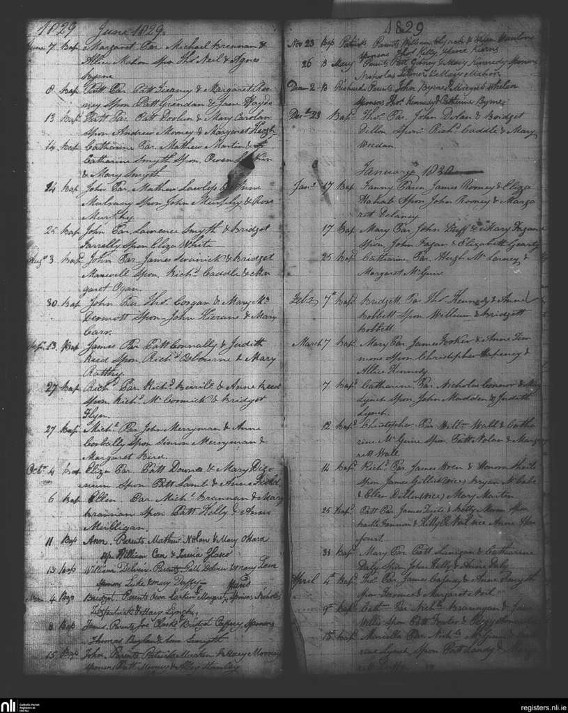 Donymore; County of Meath; Diocese of Meath. Baptisms, June 1829 to Apr. 1830