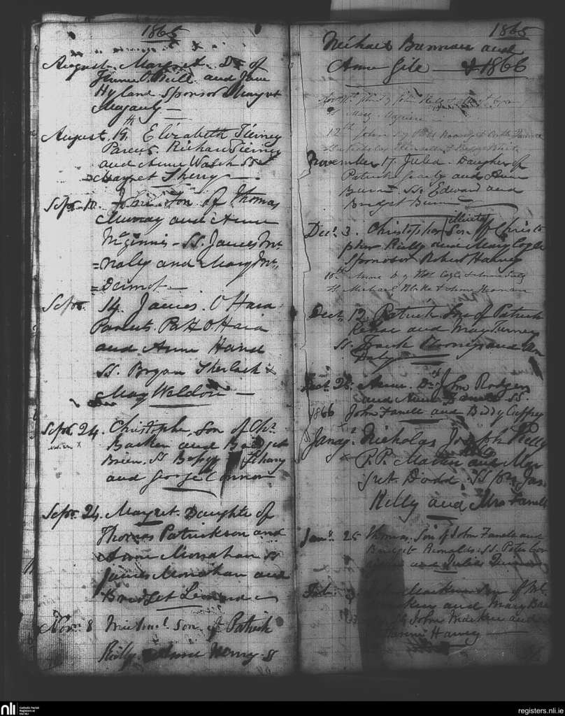 Donymore; County of Meath; Diocese of Meath. Baptisms, Aug. 1865 to Feb. 1866