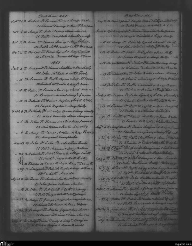 Donore; County of Meath; Diocese of Meath. Baptisms, Sep. 1858 to Nov. 1859
