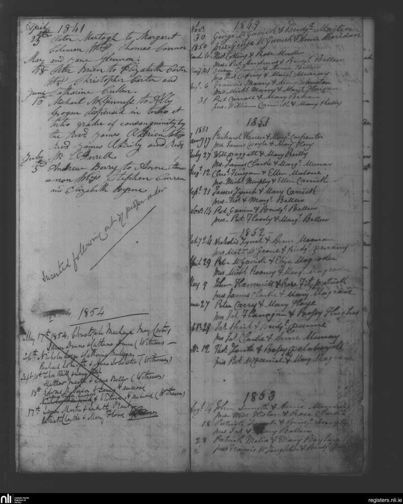 Donore; County of Meath; Diocese of Meath. Marriages, Apr. 1841 to Aug. 1853