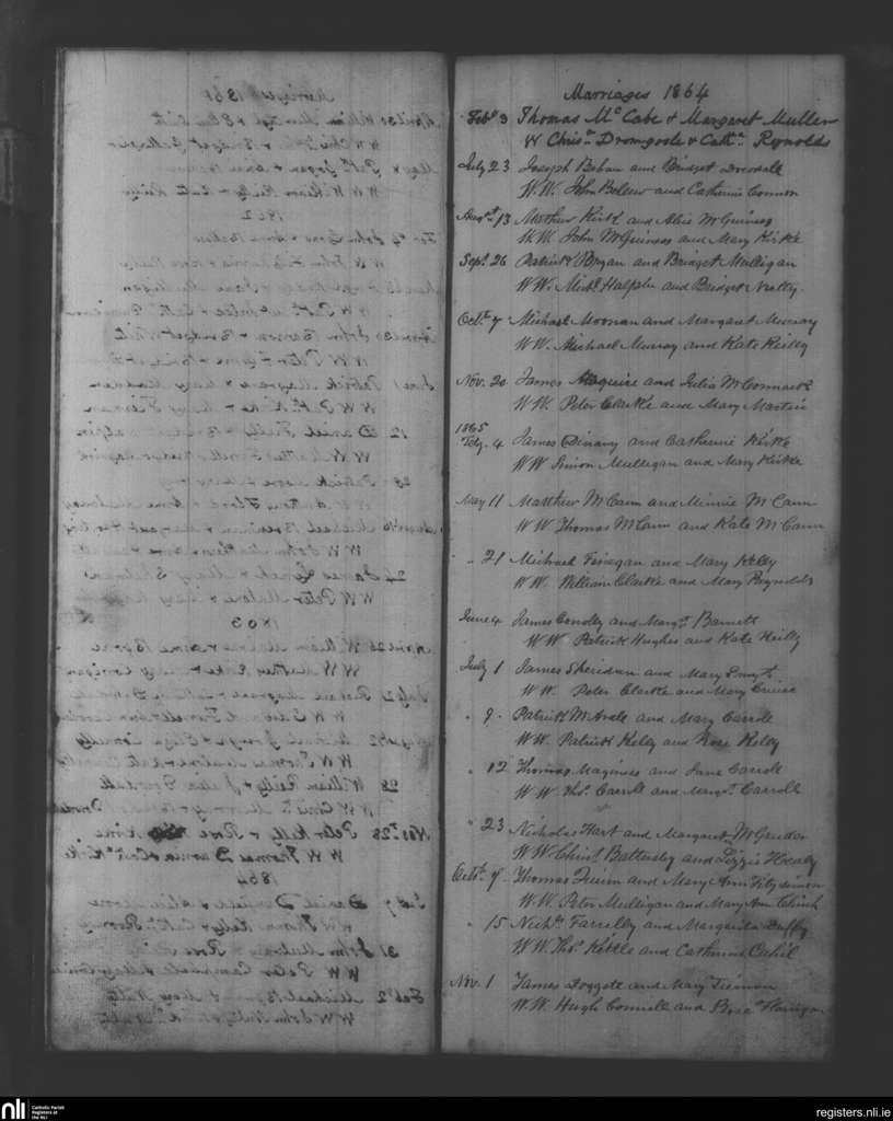 Donore; County of Meath; Diocese of Meath. Marriages, Feb. 1864 to Nov. 1865