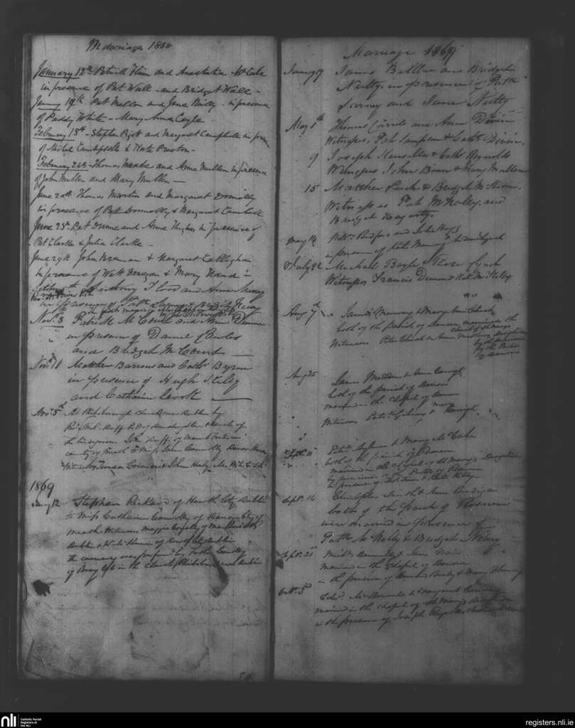 Donore; County of Meath; Diocese of Meath. Marriages, Jan. 1868 to Oct. 1869