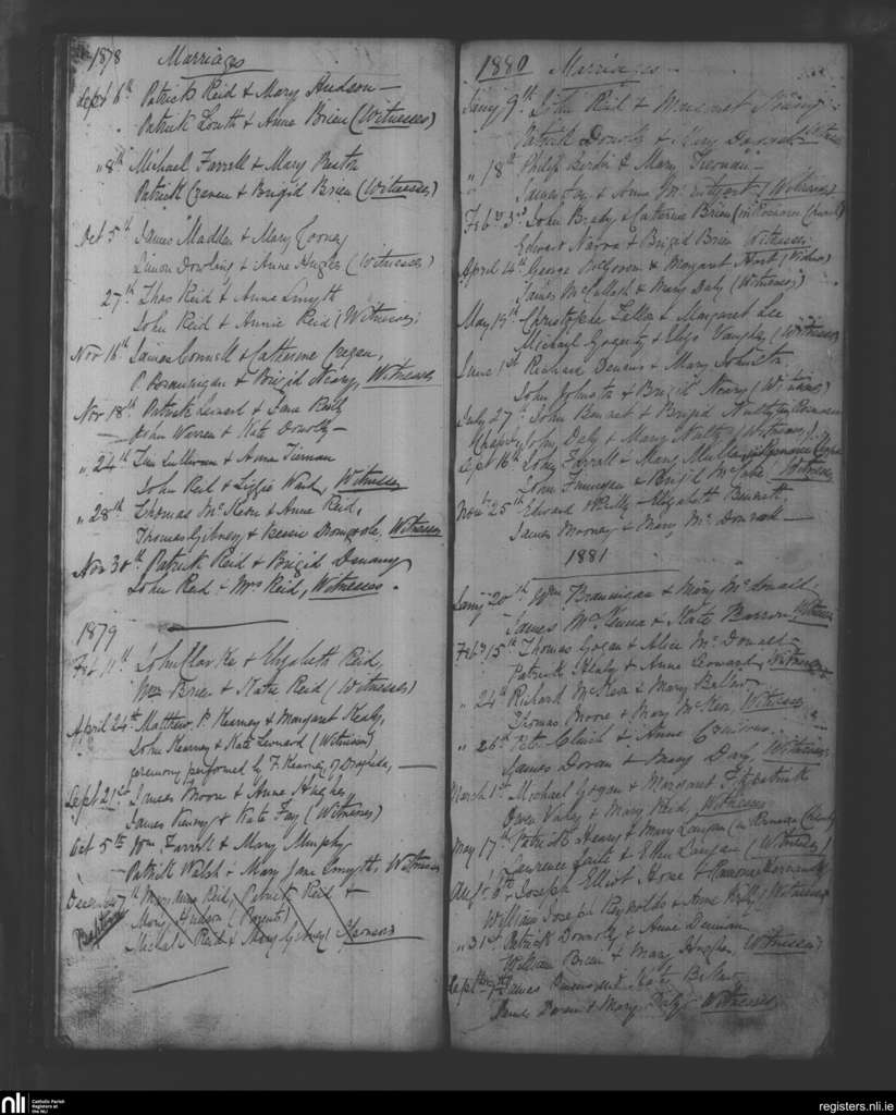 Donore; County of Meath; Diocese of Meath. Marriages, Sep. 1878 to Sep. 1881