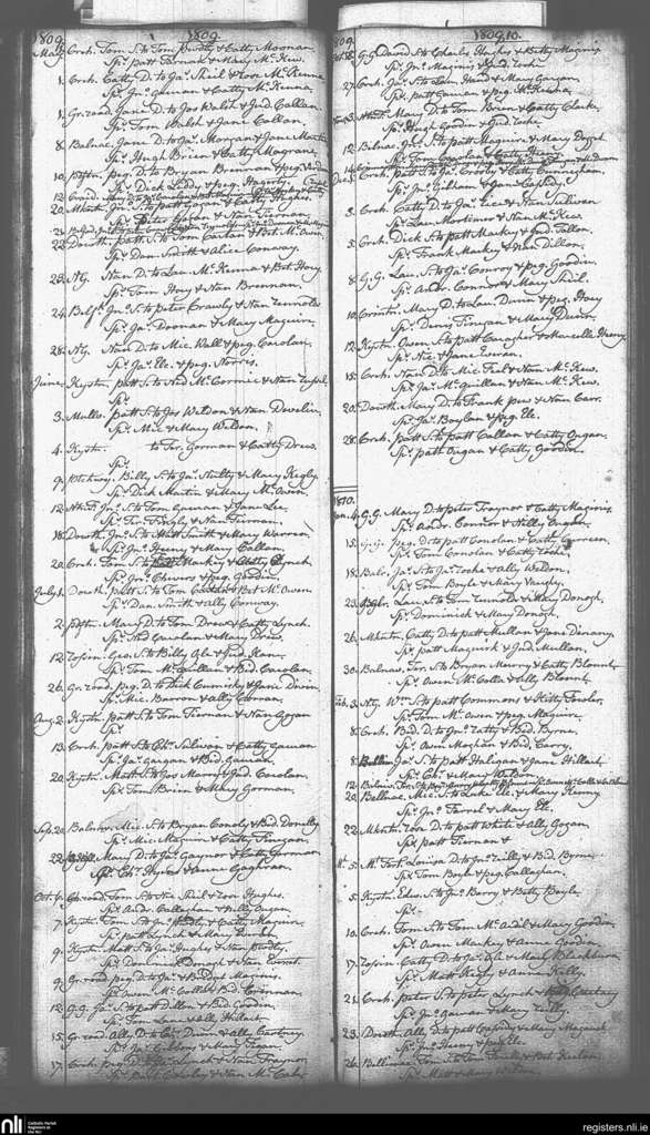 Rathkenny; County of Meath; Diocese of Meath. Baptisms, May 1809 to Mar. 1810