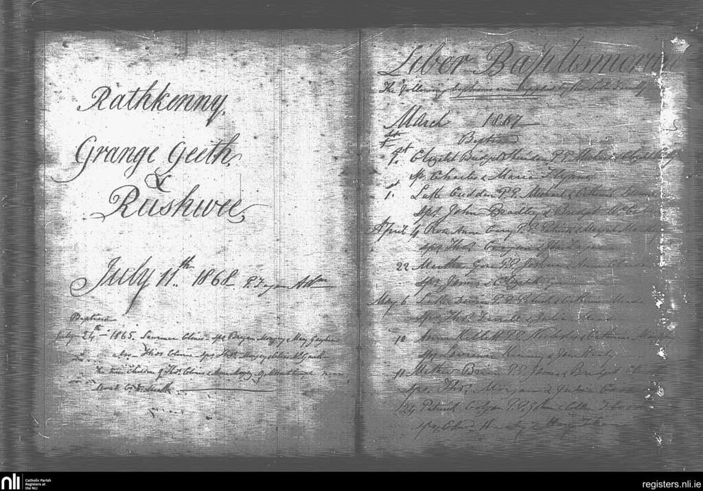 Rathkenny; County of Meath; Diocese of Meath. Baptisms, July 1865 to May 1867