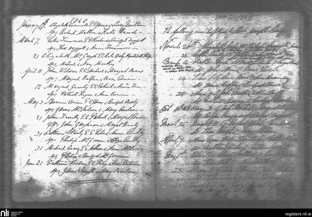 Rathkenny; County of Meath; Diocese of Meath. Baptisms, Feb. 1867 to Dec. 1868