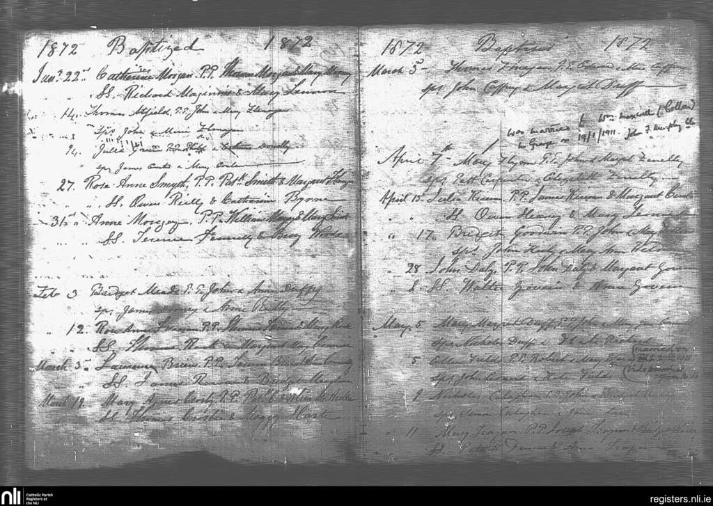 Rathkenny; County of Meath; Diocese of Meath. Baptisms, Jan. 1872 to May 1872