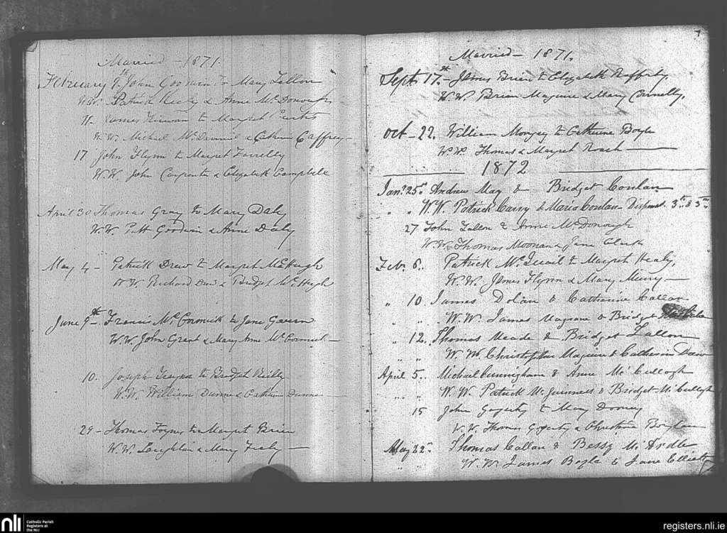 Rathkenny; County of Meath; Diocese of Meath. Marriages, Feb. 1871 to May 1872