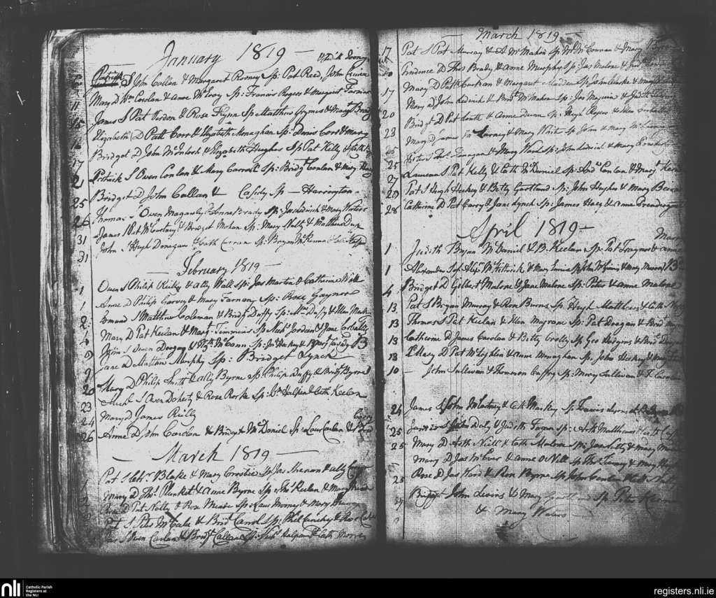 Drumconrath; County of Meath; Diocese of Meath. Baptisms, Jan. 1819 to Apr. 1819