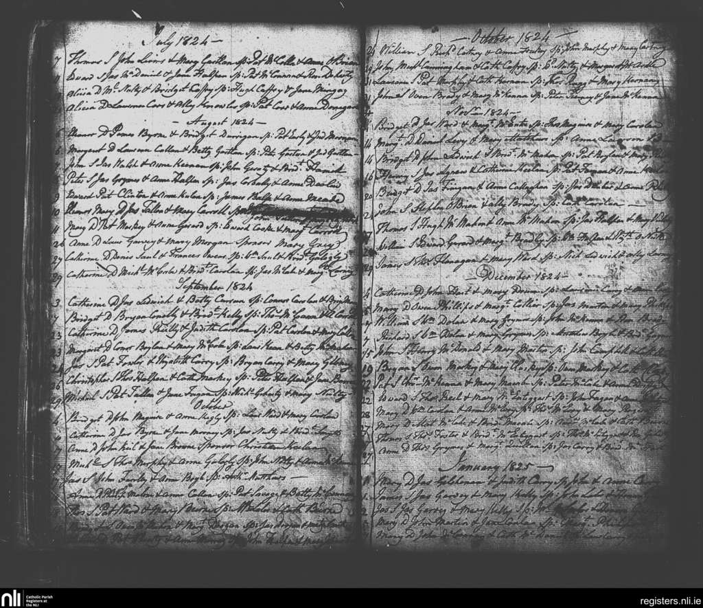 Drumconrath; County of Meath; Diocese of Meath. Baptisms, July 1824 to Jan. 1825