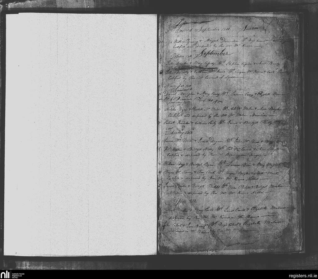 Drumconrath; County of Meath; Diocese of Meath. Marriages, Sep. 1811 to Apr. 1812