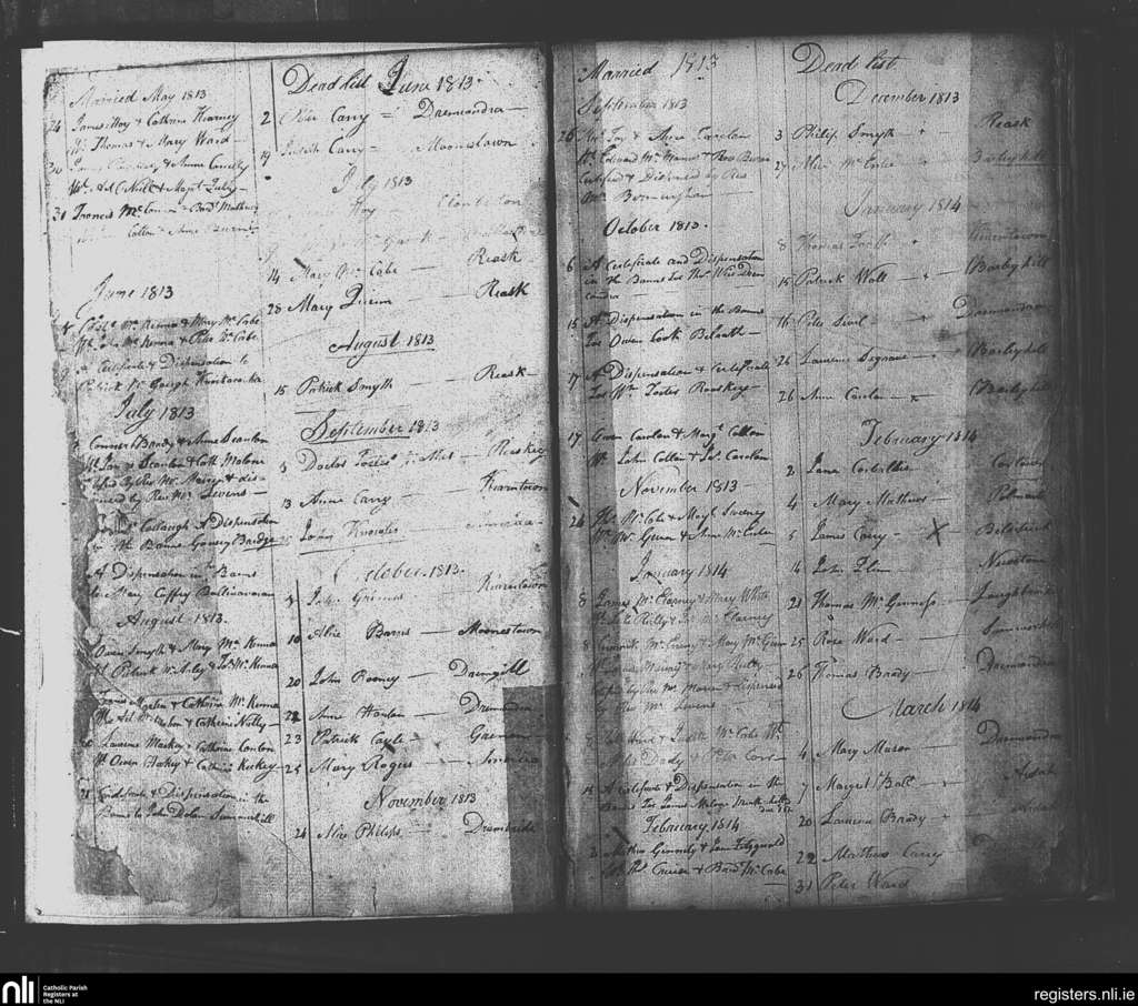 Drumconrath; County of Meath; Diocese of Meath. Marriages, Deaths, May 1813 to Mar. 1814