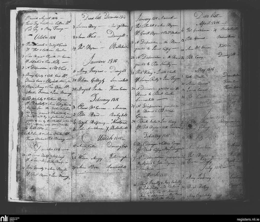 Drumconrath; County of Meath; Diocese of Meath. Marriages, Deaths, Aug. 1814 to July 1815