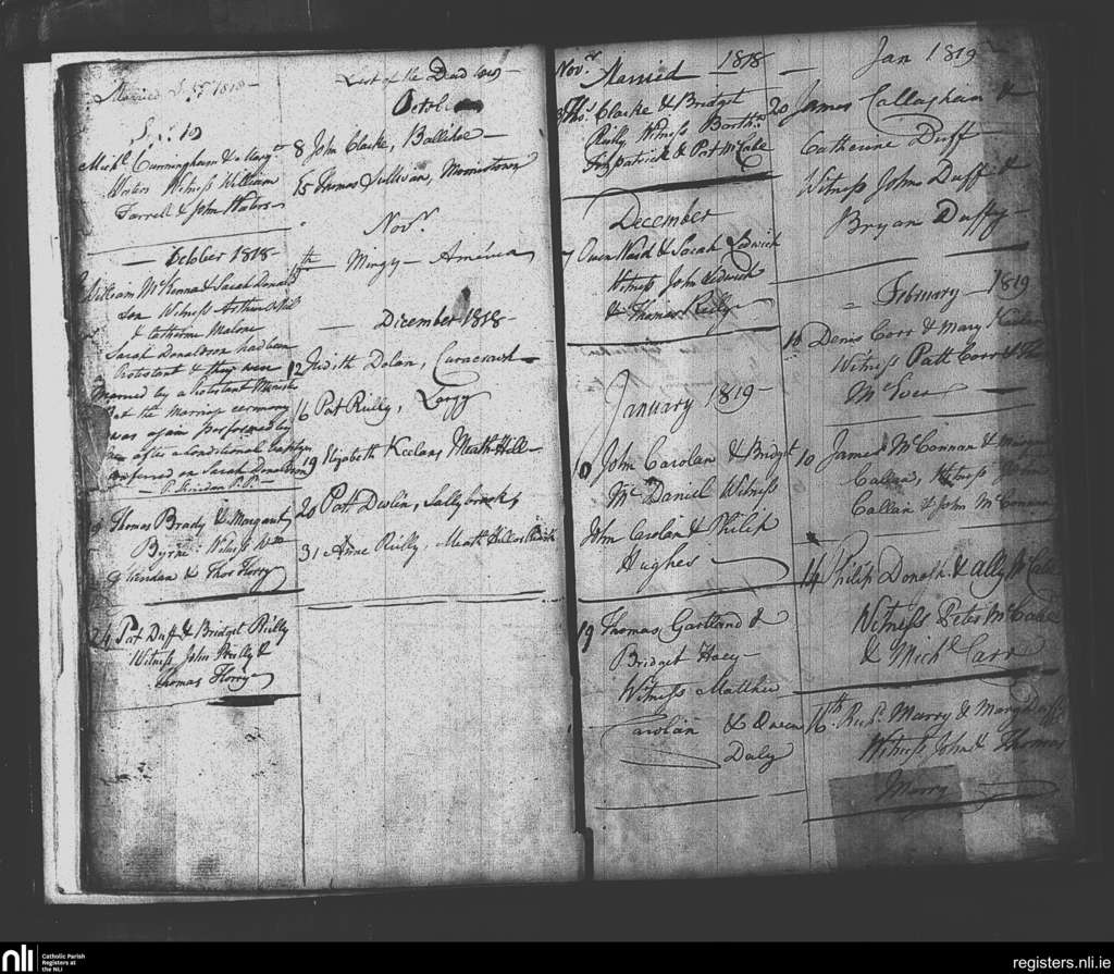Drumconrath; County of Meath; Diocese of Meath. Marriages, Deaths, Sep. 1818 to Feb. 1819