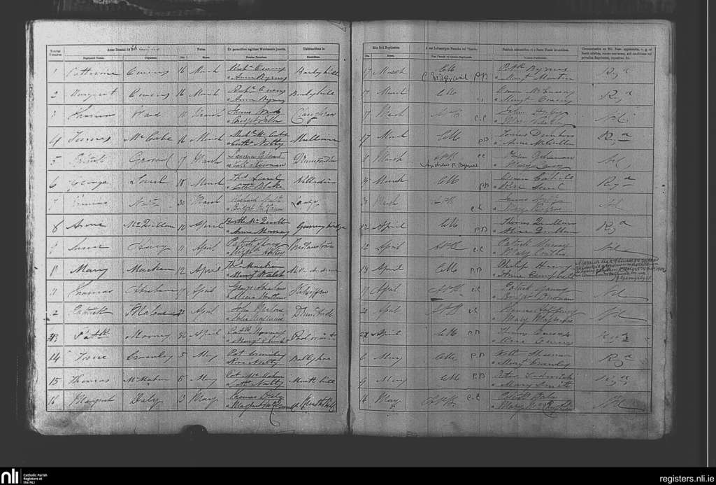 Drumconrath; County of Meath; Diocese of Meath. Baptisms, Mar. 1866 to May 1866
