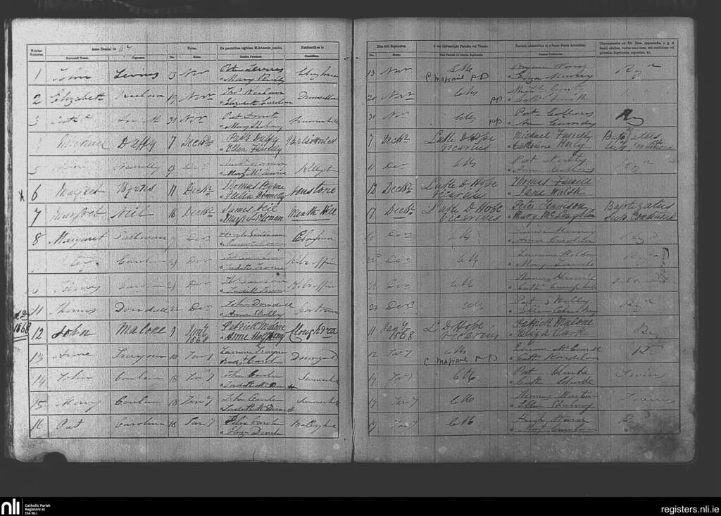 Drumconrath; County of Meath; Diocese of Meath. Baptisms, Nov. 1867 to Jan. 1868
