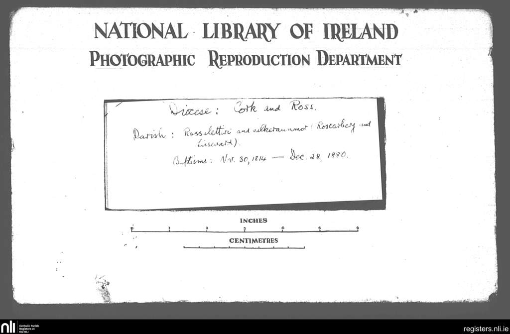 Roscarberry; County of Cork; Diocese of Cork and Ross. Baptisms