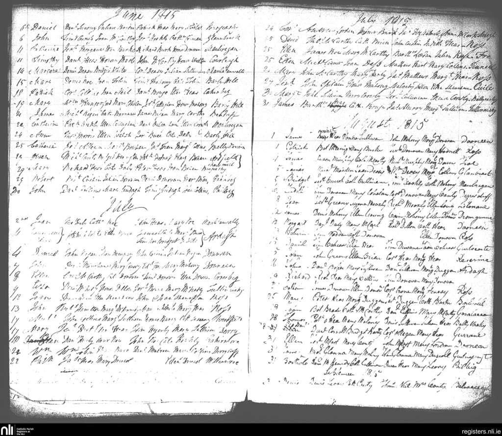 Roscarberry; County of Cork; Diocese of Cork and Ross. Baptisms, June 1815 to Sep. 1815