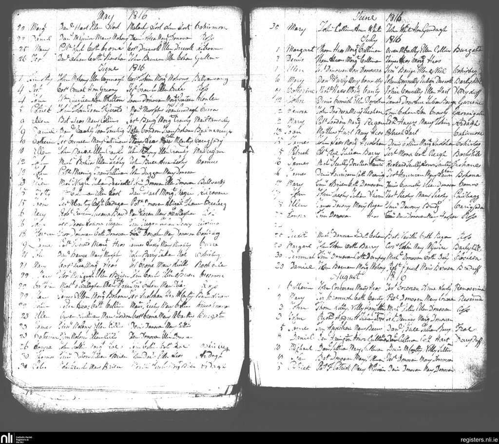 Roscarberry; County of Cork; Diocese of Cork and Ross. Baptisms, May 1816 to Aug. 1816
