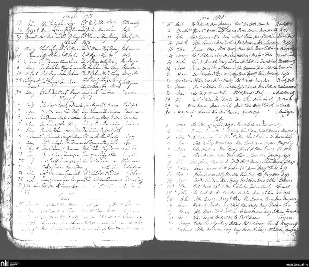 Roscarberry; County of Cork; Diocese of Cork and Ross. Baptisms, Mar. 1818 to July 1818