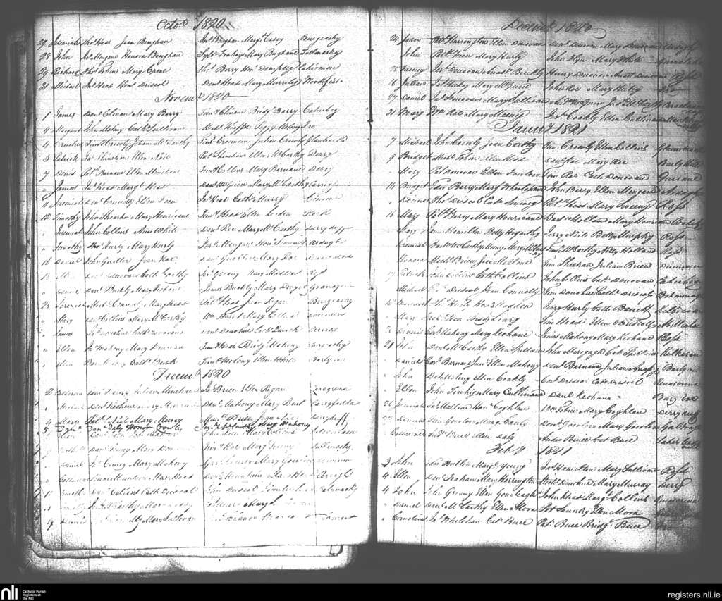 Roscarberry; County of Cork; Diocese of Cork and Ross. Baptisms, Oct. 1820 to Feb. 1821