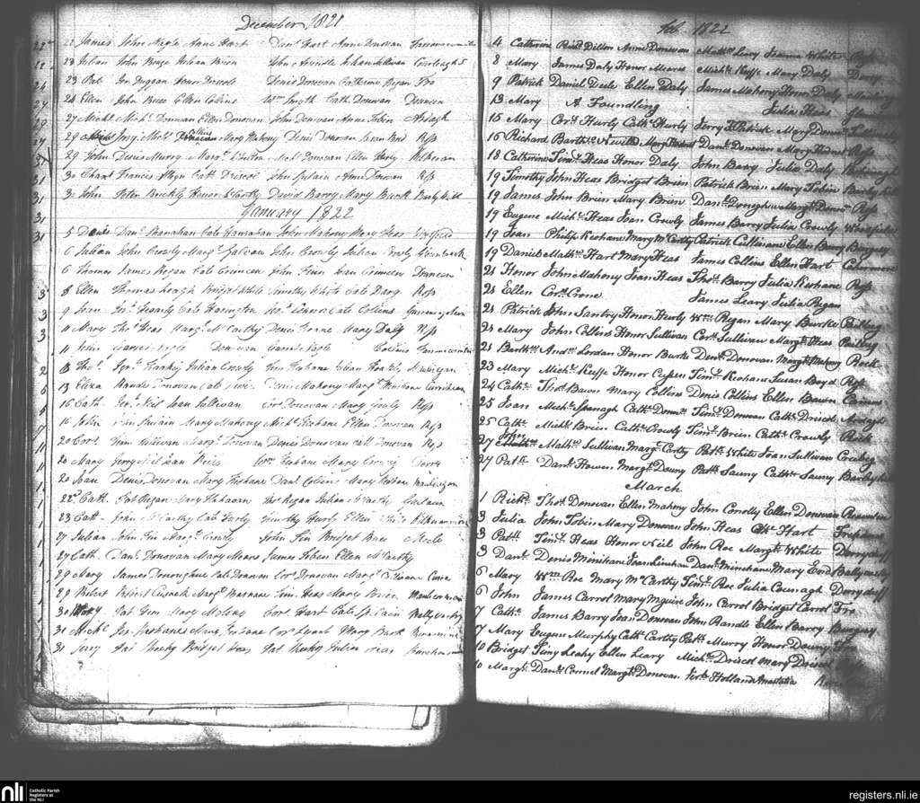 Roscarberry; County of Cork; Diocese of Cork and Ross. Baptisms, Dec. 1821 to Mar. 1822