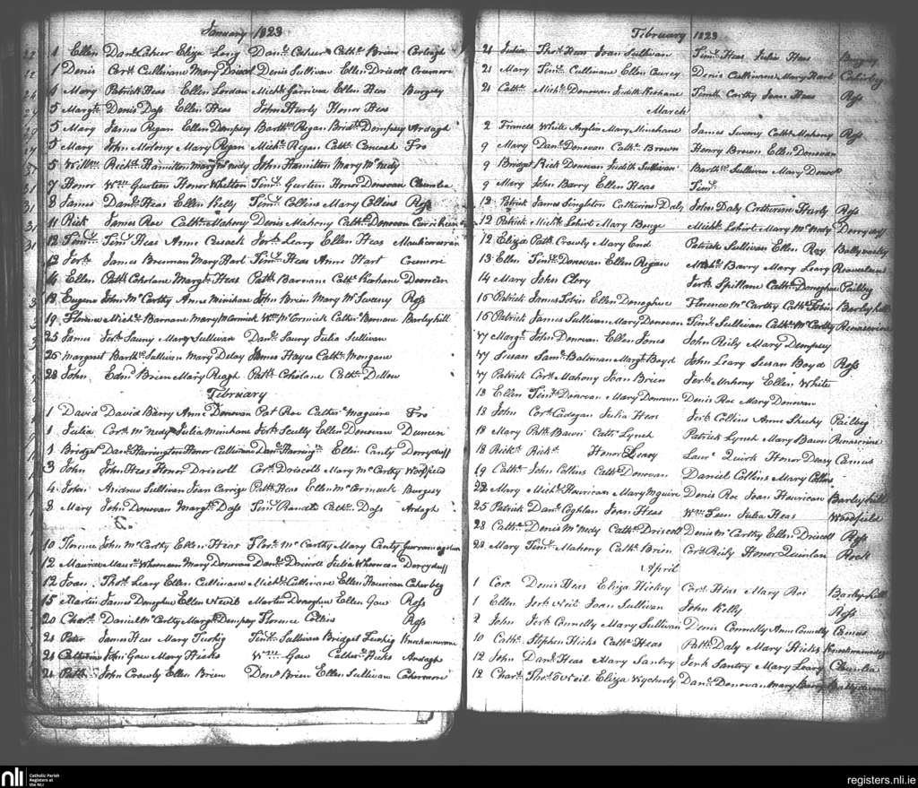Roscarberry; County of Cork; Diocese of Cork and Ross. Baptisms, Jan. 1823 to Apr. 1823