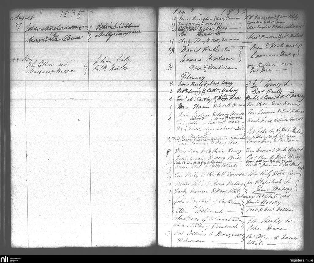 Roscarberry; County of Cork; Diocese of Cork and Ross. Marriages, Aug. 1835 to Feb. 1836