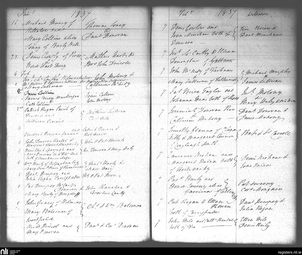 Roscarberry; County of Cork; Diocese of Cork and Ross. Marriages, Jan. 1837 to Feb. 1837