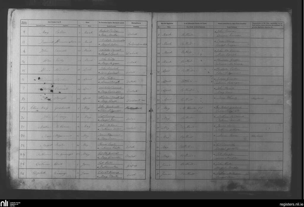 Duleek; County of Meath; Diocese of Meath. Baptisms, Mar. 1853 to June 1853